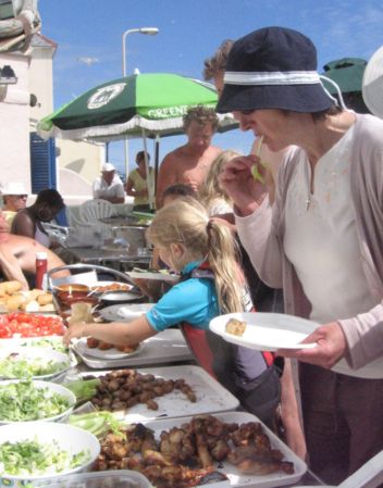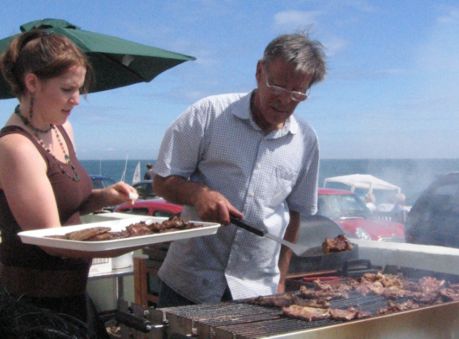 Stuart mans the BBQ.