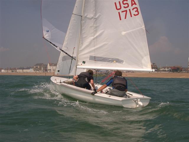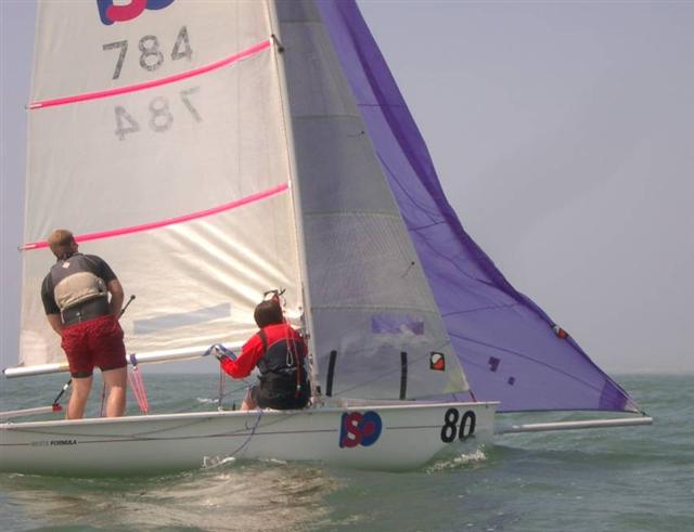Alex and Andrew gybe round Jane