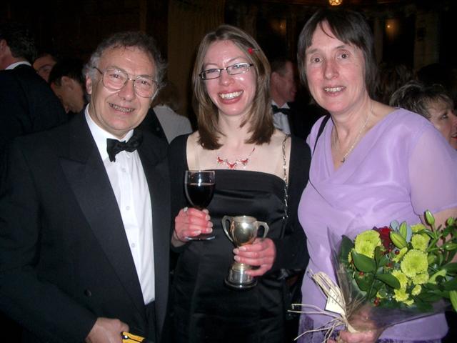 The Harrises. Mary with flowers for her tireless work organising the galley.